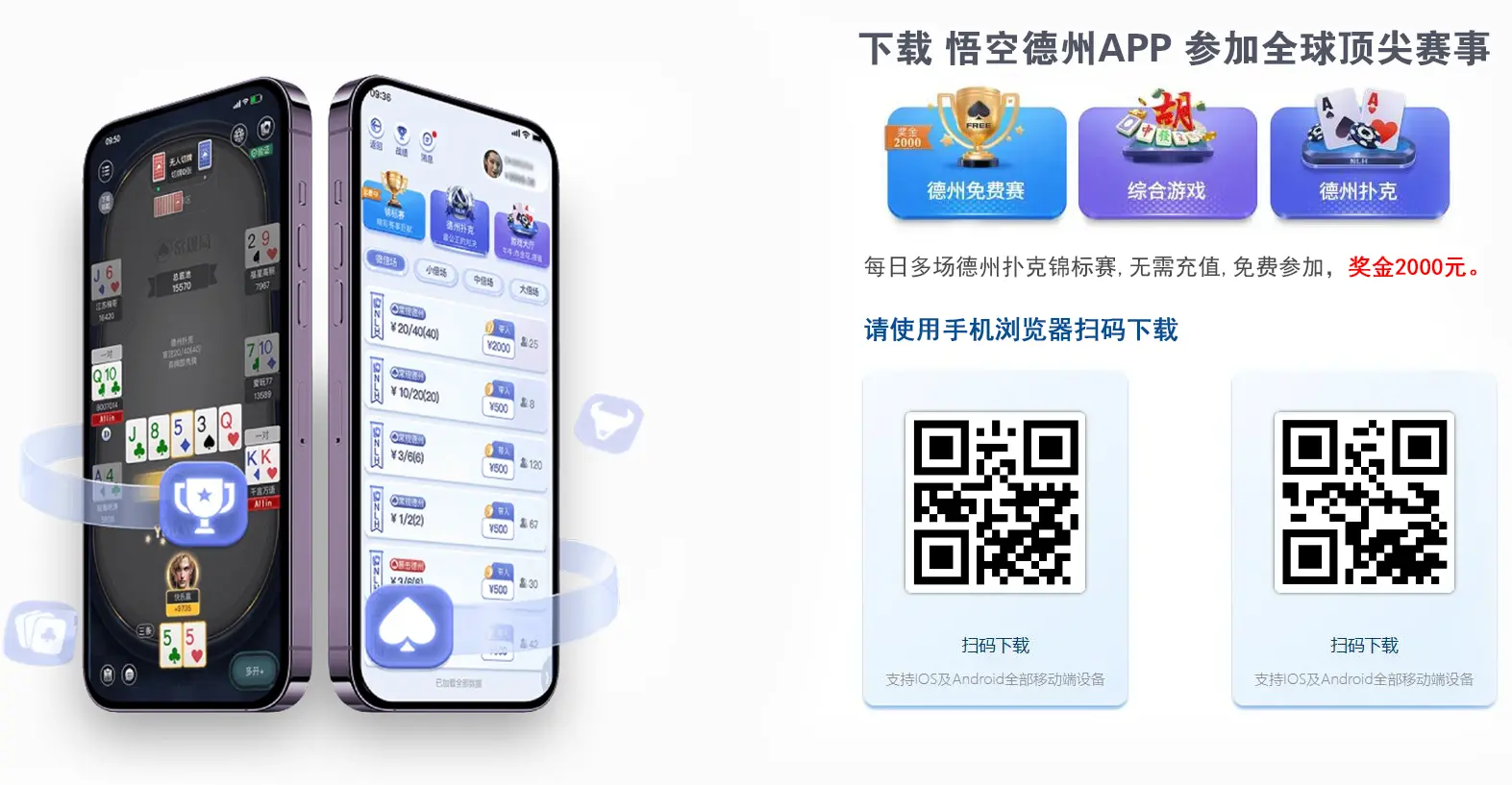 全天免费德州扑克锦标赛,无需充值,报名即可参加;奖金2000元